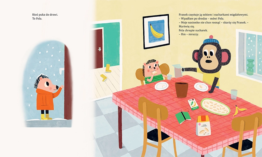 Franek zasiał w doniczce ziarenko. Czeka i czeka, podlewa i podlewa, ale ziarenko nie chce wykiełkować. Franek jest zaniepokojony. Potem słychać pukanie do drzwi. To Fela, przyjaciółka Franka. Może znajdzie rozwiązanie problemu? Franek ma życzenie to pierwsza książka o Franku i Feli, seria uroczych i ekscytujących opowieści podróżniczych dla najmłodszych czytelników książek obrazkowych. Tłumacz: Anna Czernow