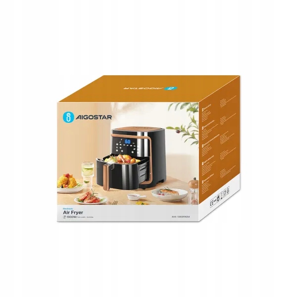 Frytownica powietrzna Aigostar jest 4 razy szybsza niż konwencjonalny piekarnik, dzięki szybkiemu wewnętrznemu ogrzewaniu przez cyrkulację powietrza przy 360º przy dużej prędkości, gotuje bez dodatku olejów w żywności, dzięki czemu ma mniej kalorii i jest zdrowsza. Zmniejsz spożycie tłuszczu nawet o 85%, unikając tradycyjnych frytownic olejowych.