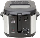 Frytkownica gwarantuje pełną kontrolę dzięki termostatycznemu systemowi regulacji temperatury w zakresie 130-190°C, co pozwala na precyzyjne smażenie ryb, frytek, kurczaków, pączków, churros i innych specjałów. Izolowana termicznie obudowa oraz filtr w pokrywie zapewniają bezpieczeństwo i czystość, umożliwiając eksplorację smaków bez obaw o przegrzanie czy rozpryski.