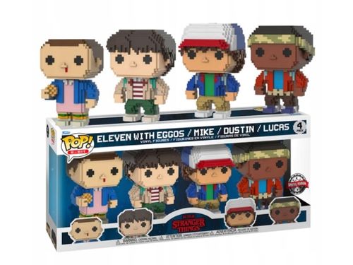 Funko POP! Stranger Things Mike Dustin Lucas 4pak figurki to zestaw kolekcjonerskich figur z serii Stranger Things. Każda z czterech figurek przedstawia jednego z głównych bohaterów - Mike'a, Dustina, Lucasa oraz jeden niezwykły element Chełmnojchika. Każda figurka ma charakterystyczny design podkreślający ich unikalne cechy, co sprawia, że są one idealnym dodatkiem do kolekcji fanów kultowego serialu.