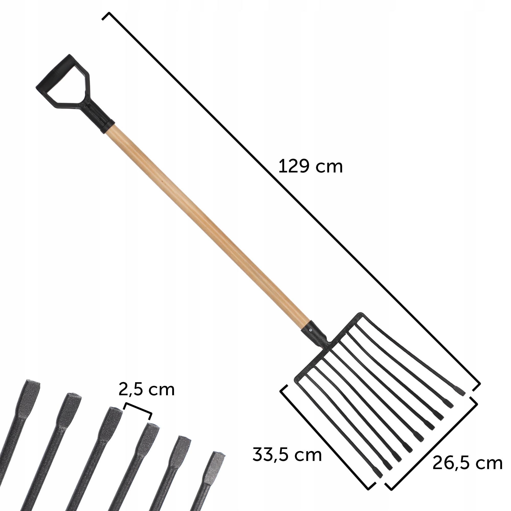Nasze gable można opisać za pomocą jednego słowa: uniwersalność. A to dlatego, że użyjesz ich nie tylko do zgarniania kamieni, ale też przerzucania buraków, ziemniaków czy innych warzyw. Wygodne narzędzie wyposażone jest w długi drewniany trzonek, który ułatwi Ci te obowiązki. Pracujesz wyprostowany i nie przejmujesz się bólami mięśniowymi po skończonej pracy – po prostu znikają!