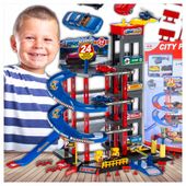 Ten wyjątkowy 4-piętrowy parking samochodowy to kompletny świat zabaw motoryzacyjnych w jednym zestawie. Wyposażony w funkcjonalną windę, stację benzynową, myjnię z obrotowymi gąbkami, warsztat samochodowy oraz lądowisko dla helikoptera. Każde piętro pomieści do 6 pojazdów, co oznacza możliwość rozszerzenia zabawy o własne samochodziki.