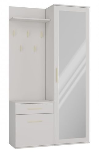 Model DUO jest stworzony z myślą o tych, którzy pragną wprowadzić do swojego domu piękne meble o prostych liniach i eleganckim wykończeniu. Dzięki dużej szafie z lustrem, praktycznej szufladzie oraz mniejszej szafce, każda osoba będzie mogła łatwo zorganizować swoją przestrzeń. Ponadto, 5 wieszaków z półką zapewnia miejsce na wszystkie ulubione ubrania.
