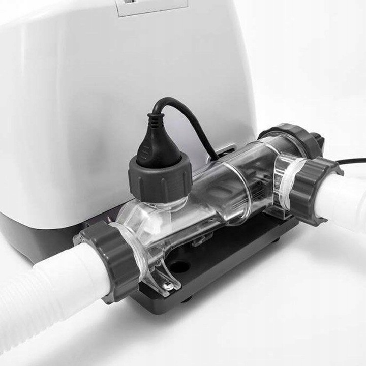 Wystarczy, że wsypiesz do wypełnionego wodą basenu odpowiednią ilość soli (dokładne proporcje pozwoli ustalić ci dołączona do instrukcji obsługi tabela), a podłączone do pompy filtrującej urządzenie przekształci ją w specjalnej komorze elektrolitycznej w naturalny chlor, który natychmiast zdezynfekuje wodę i usunie z niej bakterie, wirusy, grzyby i algi.