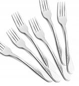 Te widelce wyróżniają się solidną konstrukcją o grubości 2,2 mm i wadze 38 g na sztukę, co gwarantuje stabilność i komfort w dłoni. Ich odporność na korozję sprawia, że zachowują blask przez lata, a możliwość mycia w zmywarce ułatwia codzienne utrzymanie w idealnym stanie.