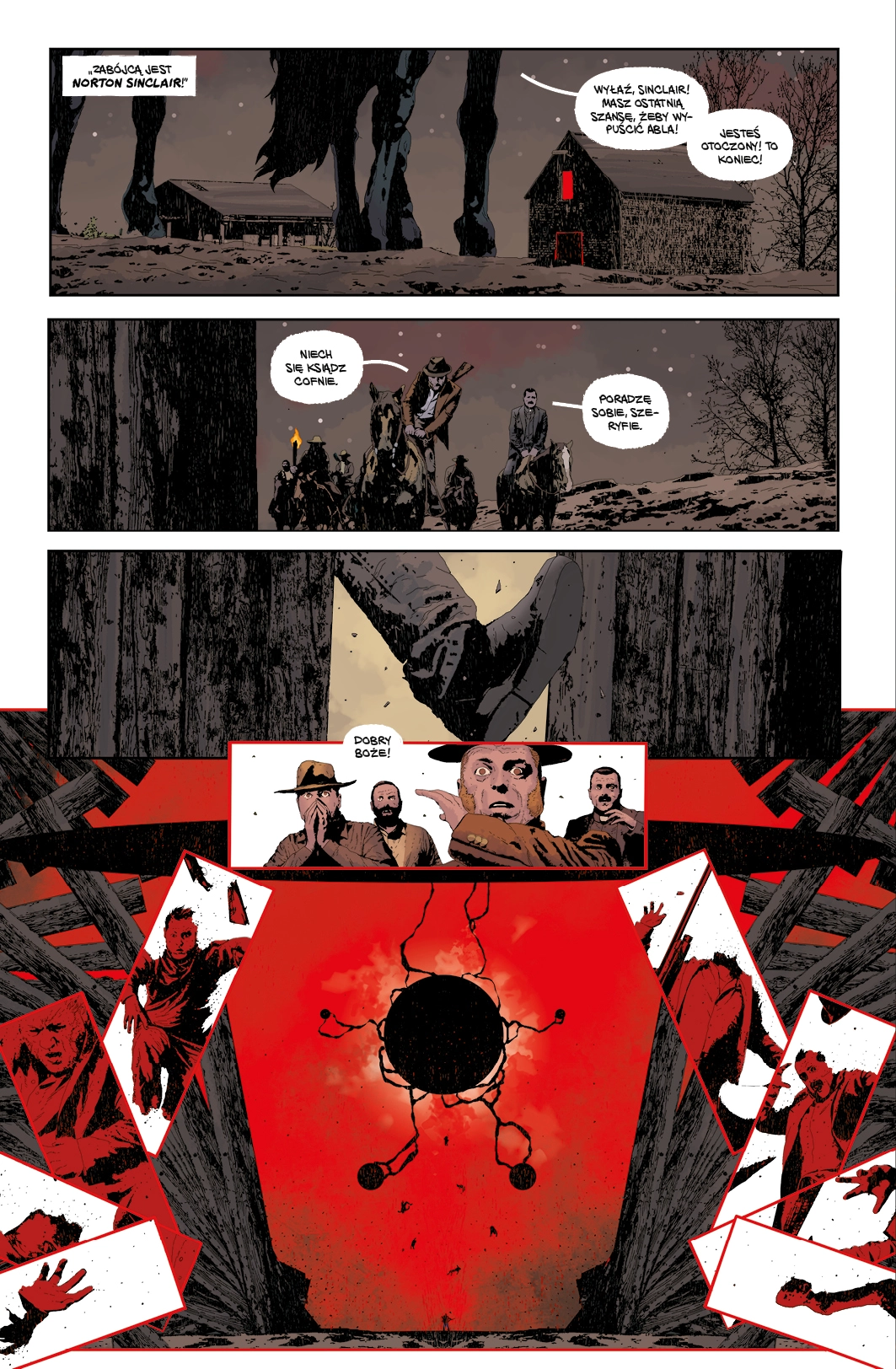 Surrealistyczny koszmar jeszcze bardziej się zagęszcza, gdy scenarzysta Jeff Lemire (Descender, Opowieści z hrabstwa Essex, Twardziel) i rysownik Andrea Sorrentino (Staruszek Logan, Green Arrow) łączą niepokój thrillera psychologicznego z elementami fantastyki naukowej, wiodąc czytelnika na drugą stronę lustra. Ojciec Burke tropi bezwzględnego zabójcę do Gideon Falls w 1886 roku, zabójcę, który umie przemieszczać się w pomiędzy epokami i światami. Jego imię to... Norton Sinclair? Jakim echem odbije się jego misja na wydarzeniach, które mają miejsce w teraźniejszości? A może to teraźniejszość odciśnie piętno na przeszłości, skoro w Czarnej Stodole czas i przestrzeń zlewają się w jedno? Album zawiera materiały opublikowane pierwotnie w zeszytach jako GIDEON FALLS #12–16. Laureat Nagrody Eisnera w 2019 roku w kategorii Najlepsza Nowa Seria.