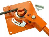 Model ten nie ustępuje w funkcjonalności – posiada ogranicznik kąta gięcia, głębokość rowka 30 mm do gięcia kilku prętów jednocześnie oraz wkładkę redukującą rowek do 8 mm. Gięcie podstawowe w rowku do Ø 14 mm oraz dodatkowe na wałku do Ø 18 mm (gładki) i Ø 16 mm (żebrowany) czyni ją idealnym narzędziem do precyzyjnych prac budowlanych.