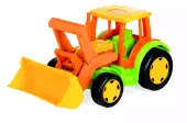 Przedstawiamy masywny, duży traktor – ładowarkę o długości 60.0 cm w ciepłych, letnich barwach. Olbrzymią zaletą pojazdu jest solidność wykonania, trwałość i wytrzymałość konstrukcji – nośność do 100 kg. Gigant Traktor Ładowarka Summer został wykonany z najwyższej jakości, bezpiecznego i nietoksycznego tworzywa odpornego na każdą pogodę. Dzięki temu dzieci mogą się nim bawić zarówno w domu, jak i na podwórku, tarasie czy w ogrodzie. Opis techniczny: • duży traktor – ładowarka o długości 60 cm i udźwigu do 100 kg, • ruchoma łyżka traktora uatrakcyjnia zabawę, • bezpieczeństwo, trwałość, wytrzymałość i bardzo dobre wykonanie oraz odporność na warunki atmosferyczne.
