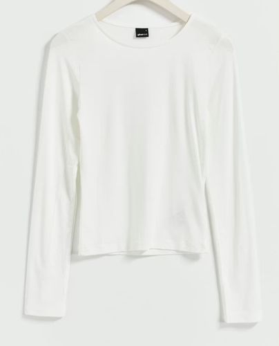 Miękka w dotyku – komfort drugiej skóry. Bluzka z długim rękawem i okrągłym dekoltem wykonana z miękkiej wiskozy. Biała bluzka o dopasowanym kroju. Proste rękawy i standardowa długość.