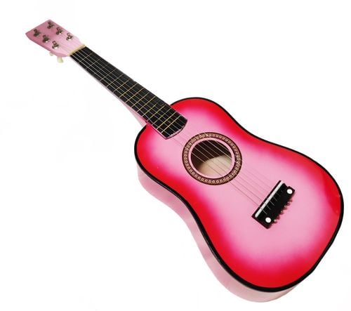Gitara wygląda jak prawdziwy instrument, który został dostosowany do potrzeb dziecka. Wykonana z drewna pomalowanego lakierem. Sześciostrunową gitarę dzięki specjalnym naciągom można nastroić i wydawać dźwięki jak na prawdziwym instrumencie.