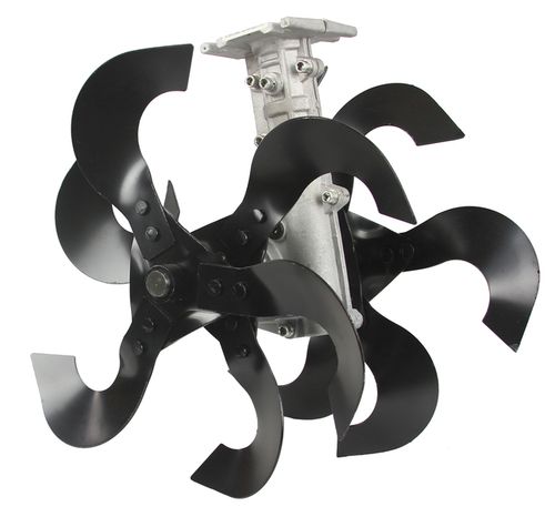 Przystawka do kosy spalinowej - glebogryzarka umożliwia spulchnianie gleby w celu przygotowania podłoża pod uprawę roślin.