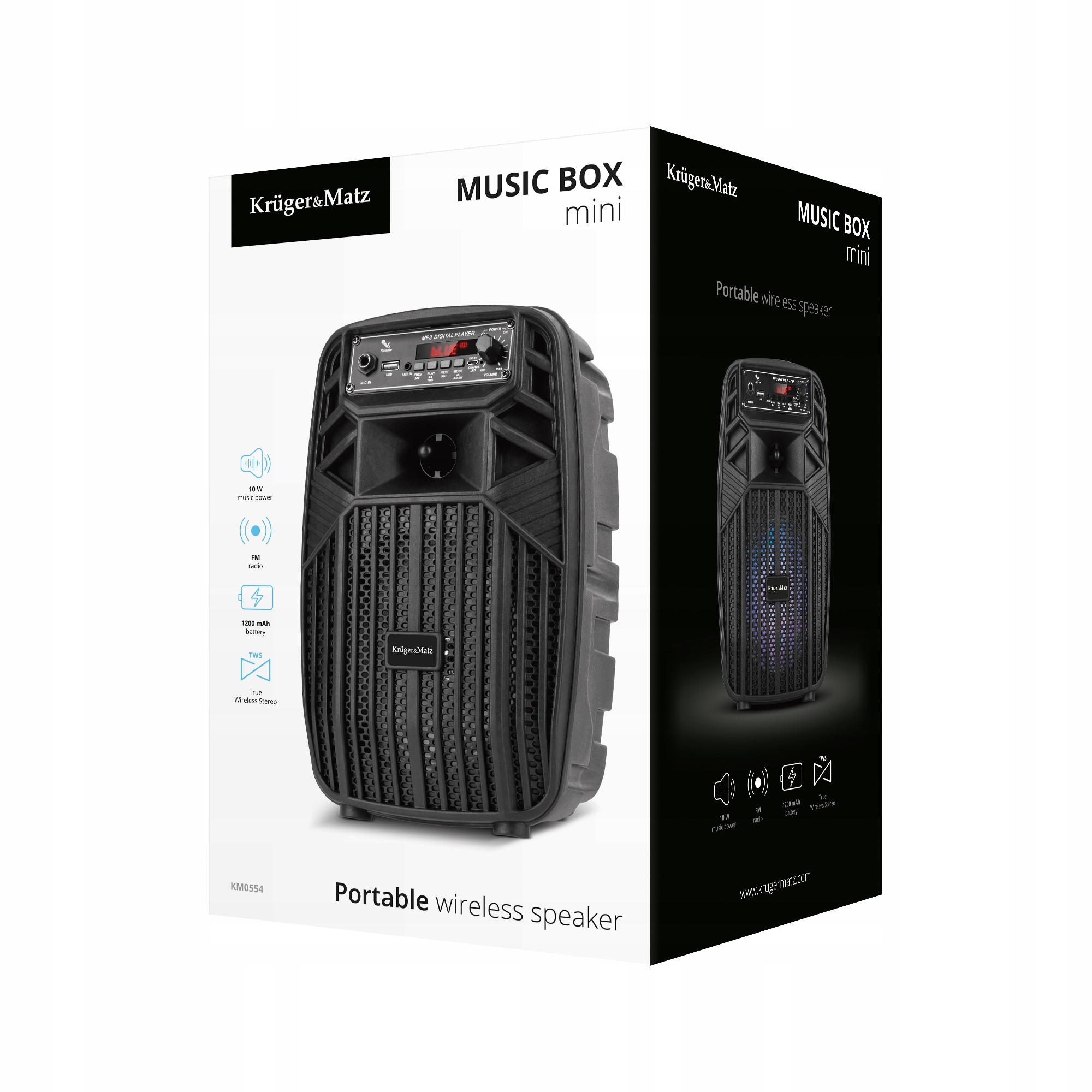 Szukasz sposobu, który pomoże Ci rozkręcić każdą domówkę? Idealnym wyborem będzie głośnik bezprzewodowy Kruger&Matz Music Box Mini, który łączy ze sobą funkcjonalność oraz niską cenę. Jedną z podstawowych cech, która powinna zwrócić Twoją uwagę to wejście mikrofonowe, które pozwoli zorganizować wieczór karaoke. Ty i Twoi znajomi wolicie potańczyć? Dwa przetworniki, w jakie został wyposażony ten głośnik ? 6,5- oraz 1-calowy ? zagrają z mocą 10 W. Jeśli jest to jednak dla Was za mało, możecie skorzystać z funkcji True Wireless Stereo, która pozwoli połączyć ze sobą dwa głośniki bezprzewodowe Music Box Mini.