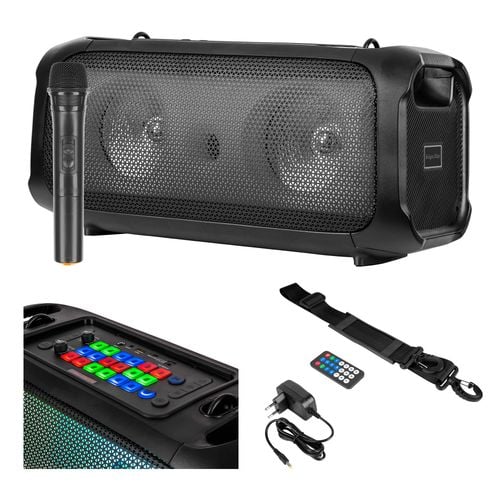 Music Box Party DJ, dzięki technologii Bluetooth możesz połączyć praktycznie z każdym urządzeniem. Dzięki obecności portów AUX, USB i microSD możesz słuchać ulubionej playlisty zapisanej na smartfonie, karcie pamięci czy pendrivie. Music Box Party DJ to boombox z radiem, zatem bez problemu umożliwi słuchanie Twoich ulubionych stacji.