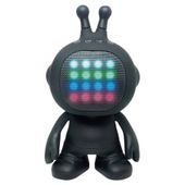 Głośnik z gumowym wykończeniem ma unikalny design w kształcie robota z diodami LED na przedniej stronie, które tworzą kolorowe efekty świetlne pulsujące w rytm muzyki. Dzięki akumulatorowi i technologii Bluetooth® możesz zabierać głośnik ze sobą gdziekolwiek i cieszyć się wspaniałą atmosferą muzyczną do 6 godzin.