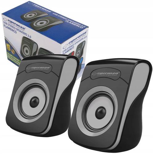 Głośniki Esperanza Flamenco 2.0 Czarno-szare to idealne rozwiązanie dla każdego miłośnika muzyki, filmu i gier. Te wysokiej klasy głośniki stereofoniczne przeniosą Cię w świat niepowtarzalnych dźwięków, które dostarczą Ci kinowych wrażeń w zaciszu własnego domu.