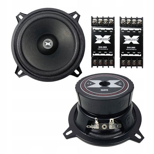 Samochodowe głośniki średnio-niskotonowe (mid-woofery) o średnicy 130 mm marki Excursion z serii SHX (Street High Power eXcursion). Głośniki z serii SHX, to bardziej zaawansowane brzmieniowo produkty o podwyższonej wydajności przeznaczone do uniwersalnych zastosowań oraz jako zamienniki fabrycznych systemów głośnikowych (OEM). W porównaniu do cieszących się bardzo dobrą opinią głośników z niższej serii SX, mid-woofery SHX prezentują znacznie dojrzalszy i bardziej dynamiczny charakter brzmienia. Wyższa moc wzmacniacza przeważnie zawsze zapewnia lepszą kontrolą głośników. Z tego powodu impedancja cewek mid-wooferów SHX została obniżona do 3 Ohm. Jest to jeszcze akceptowalna wartość przez większość standardowych radioodtwarzaczy i dobre systemy fabryczne. Dzięki temu można efektywniej wykorzystać każdy wzmacniacz, nawet wbudowany w radioodtwarzaczu, uzyskując z niego dodatkowo ok. 25% więcej mocy, co w praktyce przekłada się na bardziej dynamiczne brzmienie.. Stożkowe membrany mid-wooferów wykonano z bardzo dobrego materiału, którym jest 2-warstwowy kompozyt papieru i naturalnej wełny z domieszką włókna szklanego. Sprawia to, że membrany są lżejsze ok. 10%, co skutkuje wyższą detalicznością brzmienia w zakresie średnich tonów oraz odczuwalną poprawą szybkości ataku fundamentu basowego (po wstępnym okresie docierania). Natomiast silniejszy o 25% wentylowany układ magnetyczny EFF (Efficient Flux Field) wraz z wydłużoną szczeliną cewki umożliwiają większe liniowe wychylenia membrany, zapewniając tym znacznie wyższą wydajność głównie w zakresie niskich tonów. Stalowe kosze mid-wooferów oraz aluminiowe karkasy cewek zostały wyposażone w dodatkowe otwory wspomagające system chłodzenia. Podobnie jak w serii SX, również membrany mid-wooferów SHX mają specjalnie ukształtowane nakładki przeciwpyłkowe (dustcap) w stylu korektorów fazy, których głównym zadaniem jest poprawa rozdzielczości brzmienia średnich tonów w przypadku większego kąta odsłuchu (np. przy nisko zamontowanych mid-wooferach drzwiowych). W zwestawie znajdują się dwie 2-drożne zwrotnice pasywne pierwszego rzędu (HPF 6 dB/okt., LPF 6 dB/okt.) przygotowane do współpracy z opcjonalnymi głośnikami wysokotonowymi.