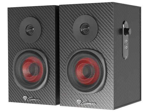 Głośniki Genesis Helium 200 łączą elegancką, klasyczną bryłę prostopadłościanu z gamingową estetyką, dzięki stylowej carbonowej fakturze oraz stalowym i czerwonym akcentom charakterystycznym dla marki Genesis. Ten uniwersalny wygląd doskonale wpasuje się w wystrój każdego pokoju gracza.