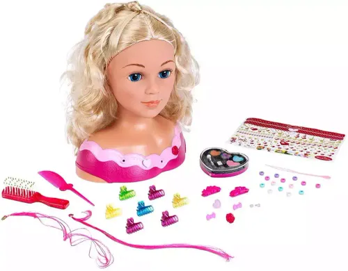 Przepiękna głowa do stylizacji wielkością i wyglądem przypominająca dziecko może doskonale służyć do zabawy jak i do nauki dbania o siebie. Jest to świetny pomysł na wspólną zabawę mamy z córką. Włosy lalki są miłe w dotyku i gęste, dzięki czemu wielokrotne ich czesanie i częste układanie fryzury nie ma wpływu na pogorszenie jakości. Opakowanie zawiera liczne akcesoria do układania włosów oraz obrazkowe instrukcje wykonania przykładowych fryzur. Do zestawu dołączony jest zestaw do makijażu, który można wykorzystać zarówno do umalowania zabawkowej głowy, jak i siebie. Wszystkie elementy najwyższej jakości.