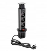 Ten nowoczesny przedłużacz biurowy wpuszczany w blat wyróżnia się przemyślaną konstrukcją, która idealnie integruje się z meblami. Z trzema gniazdami 230V o uziemieniu, zapewnia niezawodne zasilanie urządzeń, umożliwiając łatwy dostęp bez zbędnych kabli na wierzchu.