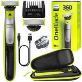 Maszynka Philips OneBlade 360 Silver z etui wyróżnia się zaawansowaną technologią OneBlade 360, która zapewnia płynne i efektywne golenie dzięki szybko poruszającemu się nożykowi (200 ruchów na sekundę) oraz podwójnemu systemowi ochrony. To narzędzie idealnie radzi sobie z dłuższymi włosami, przycinając je bez podrażnień i gwarantując komfort na najwyższym poziomie, co pozwala na precyzyjne modelowanie bez wysiłku.