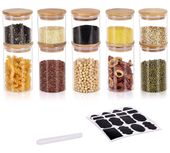 GoMaihe 200 ml + 300 ml, zestaw 10 pojemników na przyprawy, hermetyczne, szklane pojemniki z pokrywką, zestaw pojemników do przechowywania żywności, herbaty, wielokrotnego użytku
