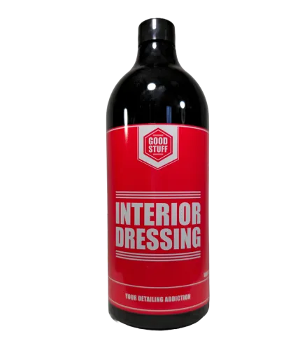 Good Stuff Interior Dressing 1000ml to gotowy do użycia preparat do pielęgnacji tworzyw sztucznych wewnątrz samochodu. Odświeża wygląd elementów z plastiku, winylu i gumy, nadając im satynowe, naturalne wykończenie oraz właściwości antystatyczne. Chroni powierzchnie przed blaknięciem, przesuszaniem i negatywnym wpływem promieniowania UV, jednocześnie ograniczając ponowne osadzanie się kurzu.