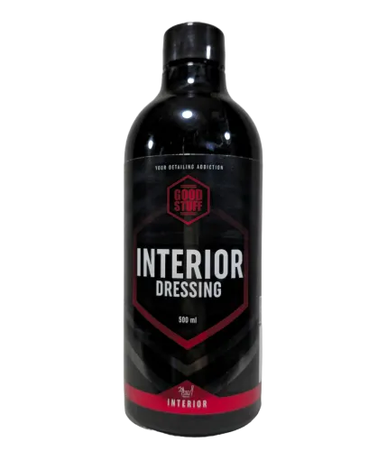 Good Stuff Interior Dressing 500 ml to preparat do pielęgnacji tworzyw sztucznych wewnątrz samochodu, który nadaje powierzchniom odświeżony wygląd, delikatny połysk oraz właściwości antystatyczne. Zabezpiecza plastiki, winyl i gumę przed blaknięciem, przesuszaniem oraz ponownym osadzaniem się kurzu.
