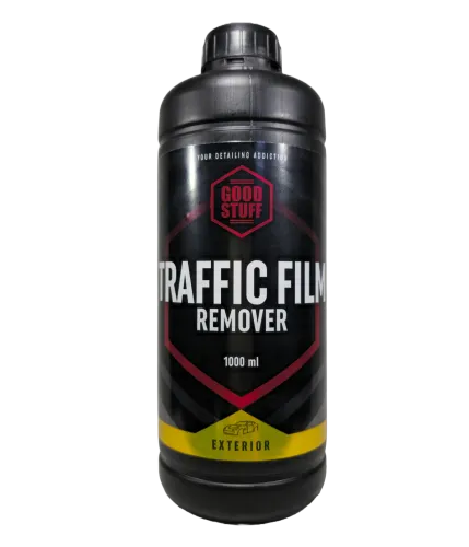 Good Stuff Traffic Film Remover 1000 ml to silny preparat do mycia wstępnego, stworzony do skutecznego usuwania filmów drogowych, błota, soli i tłustych osadów z dolnych części karoserii. Idealny do gruntownego przygotowania auta przed myciem w trudnych warunkach. Jego zasadowa formuła działa nawet w niskich temperaturach i rozpuszcza brud już w ciągu 2–5 minut.