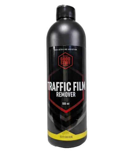 Good Stuff Traffic Film Remover 500 ml to silny środek do mycia wstępnego, przeznaczony do usuwania ciężkich zabrudzeń drogowych, takich jak błoto, osady mineralne, sól i film drogowy. Jego zasadowa, skoncentrowana formuła działa już w ciągu 2–5 minut, nawet w niższych temperaturach, przygotowując powierzchnię auta do kolejnych etapów mycia.