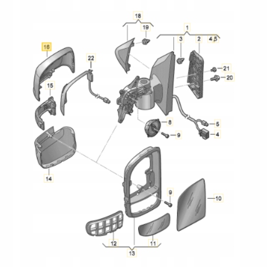 Nowa LEWA Górna Obudowa Lusterka drzwi KIEROWCY