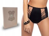 Figi Gorsenia K498 zostały wyróżnione niezwykłymi detalami – z przodu ozdobione są dwoma eleganckimi wstawkami z beżowego tiulu oraz delikatną, zieloną koronką. Ten zmysłowy akcent nie tylko dodaje figom charakteru, ale również podkreśla kobiece kształty, sprawiając, że poczujesz się atrakcyjnie i pewnie siebie w każdej sytuacji.