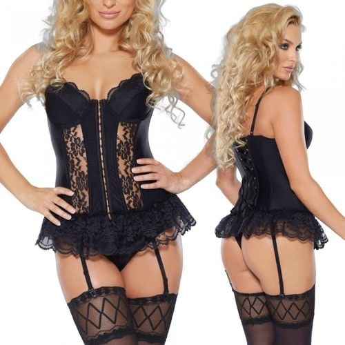 Stań się seksowną kusicielką i gwiazdą burleski! Gorset oprócz pięknej koronki ma również modelujący stanik z fiszbinami, który idealnie unosi piersi, nadając im pożądany wygląd