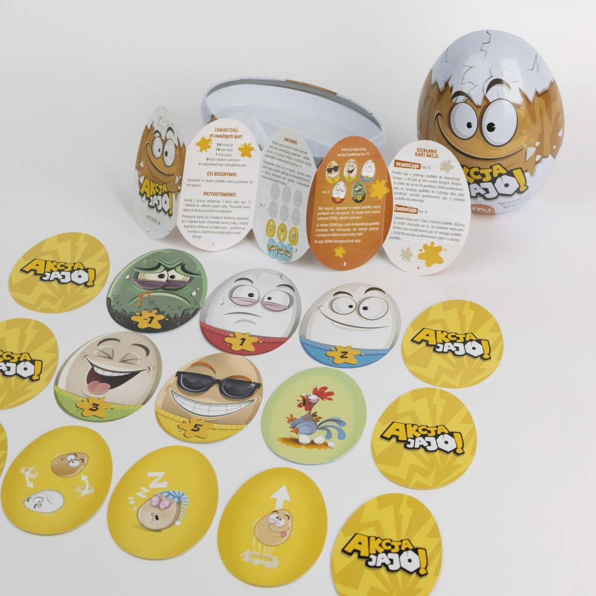 Szybka gra karciana pełna niespodziewanych zwrotów akcji! W grze kolejno zagrywacie karty w taki sposób, żeby na koniec rozgrywki to właśnie w waszym niewidocznym pudełku znalazły się jajka z największą sumą punktów. W trakcie gry zachowajcie czujność, pozostali gracze będą próbować podebrać wam wasze najlepsze jajka lub podrzucić do waszego pudełka zgniłe jaja, które mają punkty ujemne!