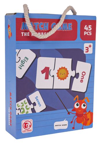 | - 45 puzzli – 15 cyfr arabskich, 15 puzzli z rysunkiem różnej ilości rzeczy, 15 puzzli z nazwą cyfry w języku angielskim. |