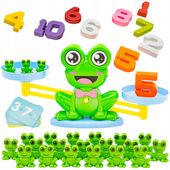 ✔️ **Bogaty zestaw edukacyjny** - waga szalkowa, odważniki-żabki, cyferki, karty z zadaniami w estetycznym opakowaniu prezentowym.
