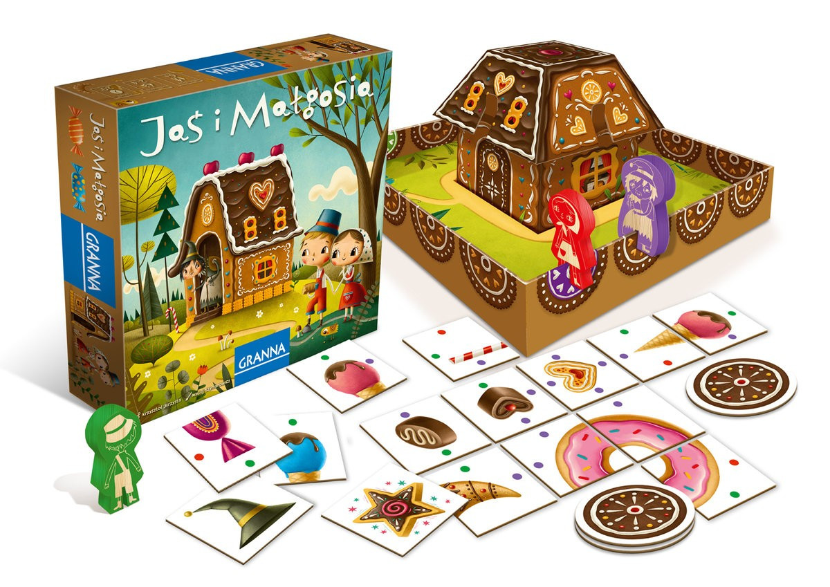 Jaś i Małgosia to wesoła kooperacyjna gra planszowa dla całej rodziny,w której wspólnie staracie się pomóc tytułowym postaciom zdobyć pięć smakowitych pierniczków, jednocześnie nie dając złapać się Babie Jadze. Aby osiągnąć ten cel, musicie ze sobą współpracować, wykazać się sprytem i logicznym myśleniem. Zgarnijcie jak najszybciej pierniczki i spierniczcie Babie Jadze!