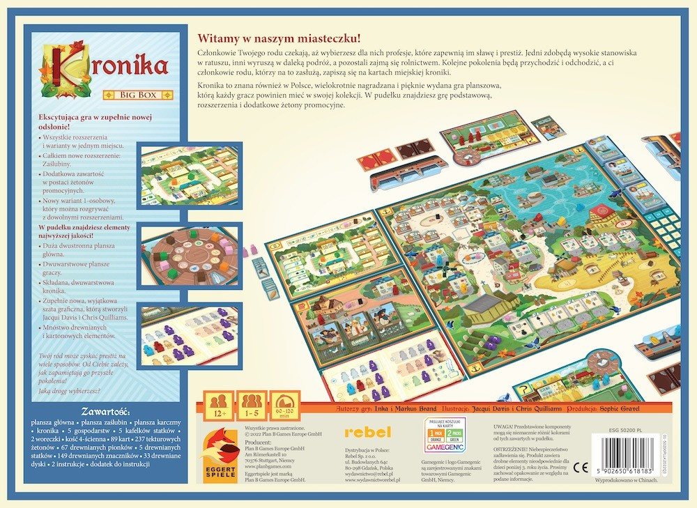 Kronika: Big Box to nowa edycja wielokrotnie nagradzanej i pięknie wydanej gry strategicznej. Podczas rozgrywek wcielamy się w przywódców rodów, rywalizujących o rozgłos i pozycję. Aby to osiągnąć, będziemy musieli obrać odpowiednią ścieżkę i umiejętnie wykorzystywać możliwości członków naszych rodów.