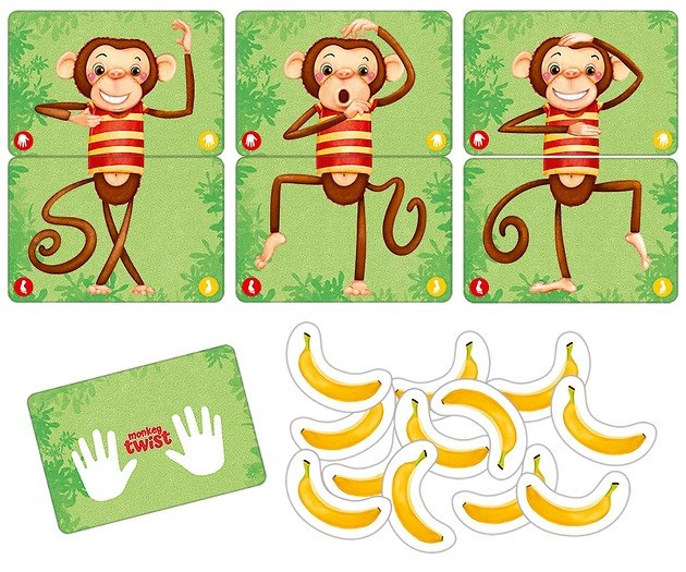 Monkey twist to imprezowa gra ruchowa w naśladowanie, w której liczy się zwinność, spostrzegawczość i szybkość. Zabawa polega na odwzorowaniu pozy małpki z wylosowanych dwóch kart. Komu się to uda, utrzyma równowagę i nie pomyli się ten dostanie banana! Gra posiada kilka wariantów, które sprawdzą się zarówno podczas samodzielnej zabawy, jak i w dużej grupie.