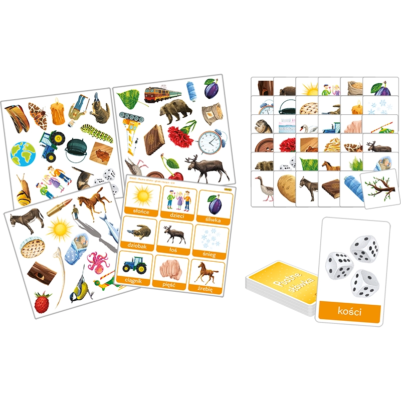 Seria gier „Psotne słówka” przeznaczona jest dla wszystkich, którzy chcą doskonalić prawidłową wymowę trudnych głosek. Psotne polskie słowa często sprawiają najmłodszym wiele trudności. Dzięki grze ćwiczenia logopedyczne staną się przyjemnością. „Każde dziecko wie już o tym, Słówka mogą robić psoty, Plączą język trudne słowa, Katastrofa więc gotowa. Jednak na to jest już rada, Ćwiczyć język wciąż wypada, Zagraj w grę dla przyjemności, A pokonasz te trudności!” Zestaw zawiera: • 56 kart, • 36 tafelków, • 4 dwustronne plansze, • instrukcję.