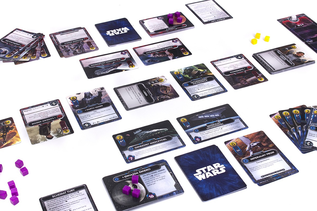 Star Wars: The Deckbuilding Game to niezwykle emocjonująca i łatwa do nauczenia dwuosobowa gra, która przeniesie kosmiczną wojnę prosto na Wasz stół. Każdy gracz stanie się stroną tego konfliktu: jeden pokieruje siłami Imperium, drugi poprowadzi Rebelię. Na przestrzeni gry obaj będą stale ulepszać swoje talie, kupując coraz potężniejsze okręty i werbując nowe jednostki, aby zwiększyć swoją siłę rażenia i zdobyć przewagę, która przesądzi o losach konfliktu.
