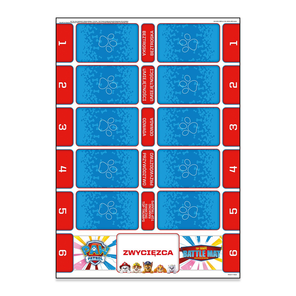 Karciana bitwa na planszy? Wypróbuj TOP TRUMPS Battle Mat w wydaniu Psi Patrol! Na kartach znajdziesz swoich ulubionych bohaterów z wartościami punktowymi w kategoriach: beztroska, umiejętności, odwaga, przywództwo oraz ranking TOP TRUMPS. Na kartach znajdziesz również akta każdego pieska - poznasz rasę, pojazd oraz znajdujące się w plecaku bohatera gadżety. Karty rozgrywaj na wygodnej planszy, a podczas rozgrywki nie zapominaj o żetonach zdolności!