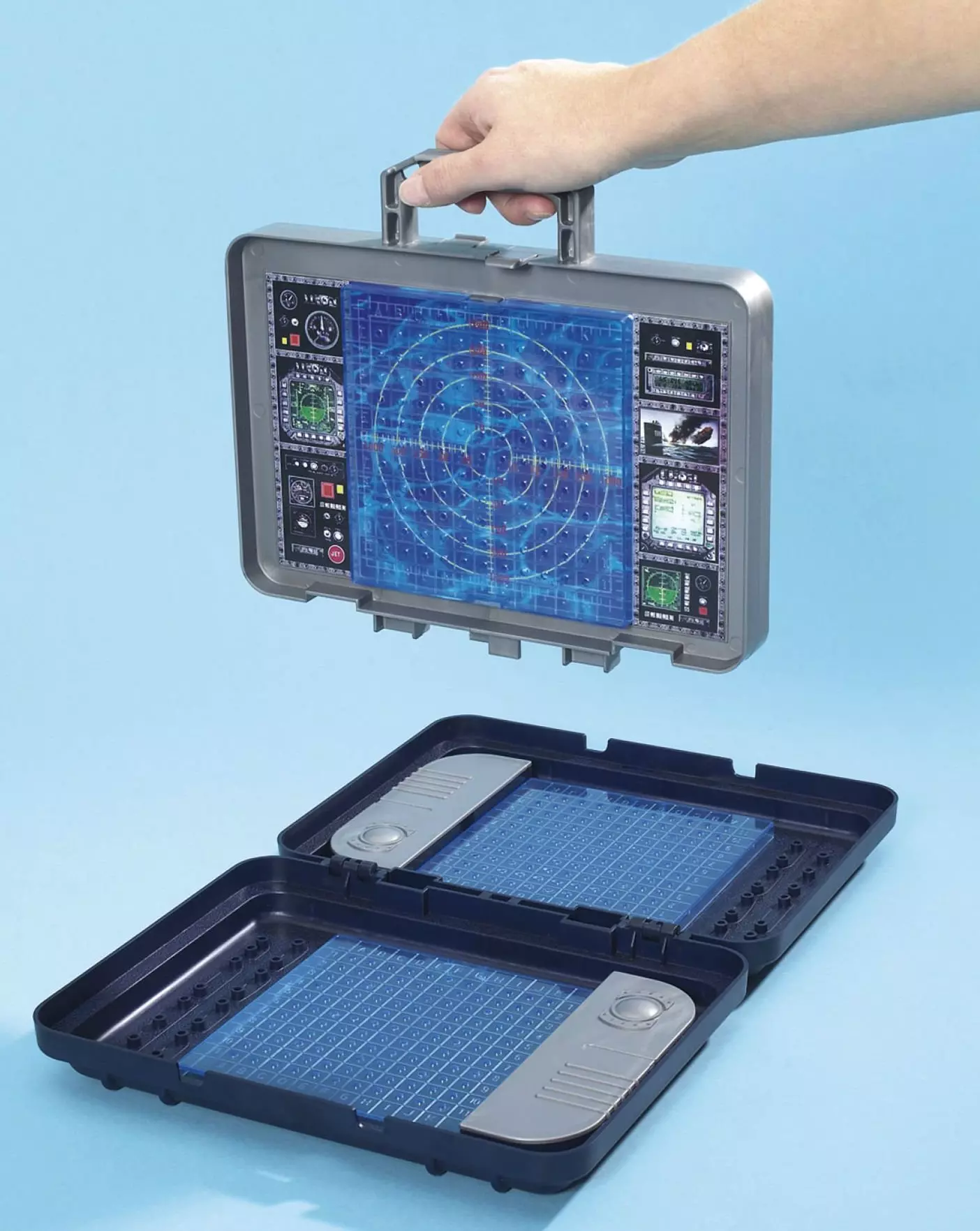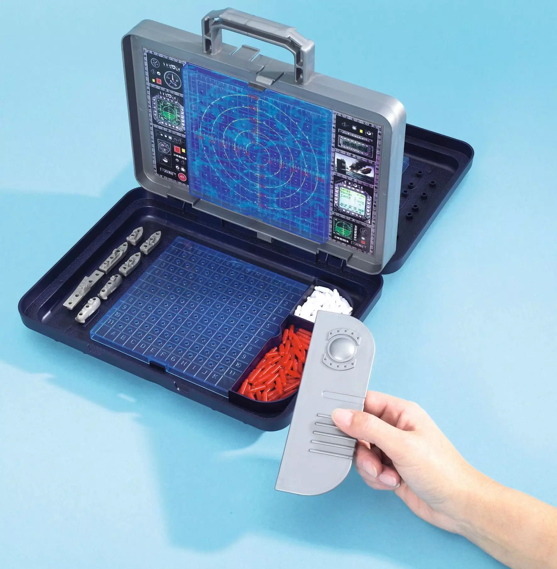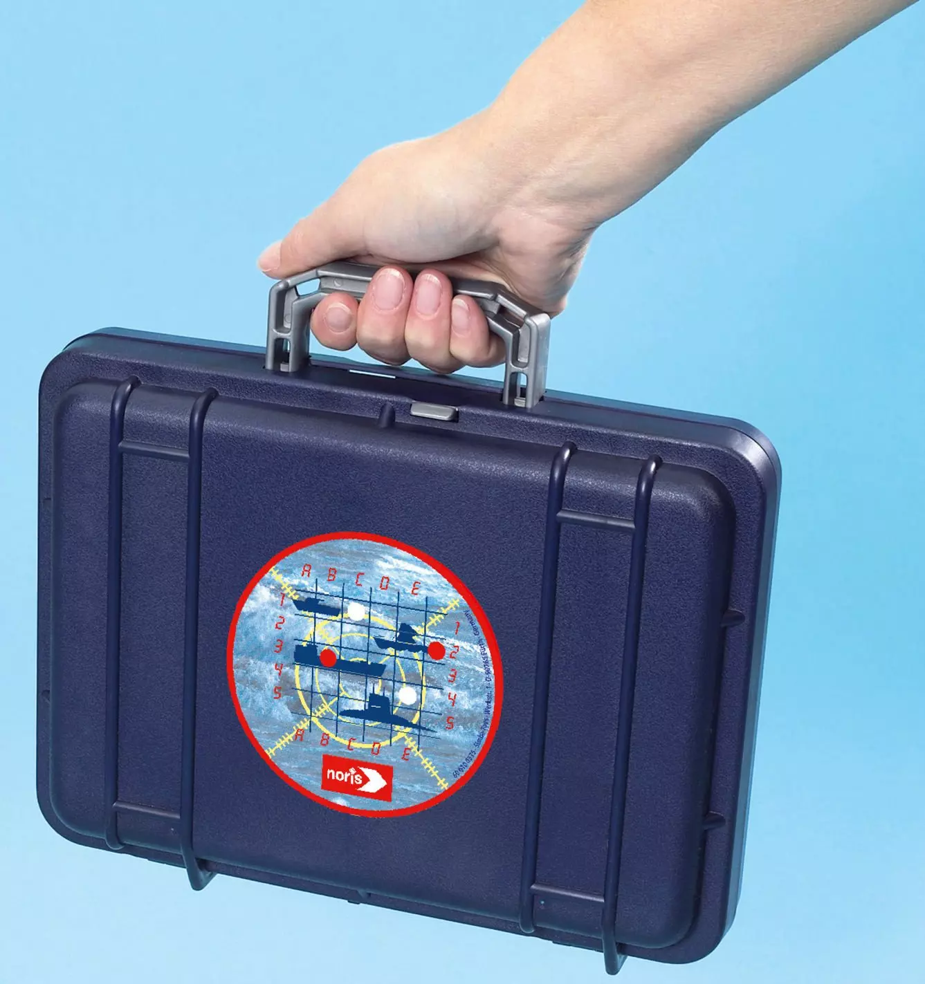 Bitwa morska w nowej odsłonie! Gra w okręty dla małych i dużych zwolenników gier strategicznych od firmy Simba, cenionego producenta zabawek dla dzieci. Gra jest ciekawą rozrywką, a zarazem rozwija kreatywne myślenie. Celem jest zatopienie wszystkich okrętów przeciwnika. Po ustawieniu ścianki zakrywającej każdy z graczy dowolnie rozmieszcza okręty na swojej planszy. Okręty nie mogą się bezpośrednio ze sobą stykać. Gracz, mający ruch, wypowiada swoje współrzędne. Przeciwnik sprawdza, czy jeden z jego okrętów nie został trafiony i ogłasza wynik przeciwnikowi. Gracz, który strzelał zaznacza odpowiednimi kolorami skutek strzału: czerwony trafiony, biały nietrafiony. Gra kończy się, gdy jeden z graczy pozostaje bez jakiegokolwiek okrętu. Tak długo jak się trafia, można strzelać dalej. Forma walizeczki ułatwia transport gry. W walizeczce są przegródki na pionki, a specjalna ścianka ustawiana pionowo uniemożliwia graczom podglądanie, jak są ułożone okręty u przeciwnika. Wymiary opakowania: 37.0 x 28.5 x 7.0 cm