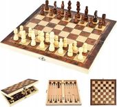 Ta wysokiej jakości gra 3w1 (szachy, warcaby, tryktrak) łączy tradycyjne rozrywki w jednym eleganckiej kasecie. Drewniana konstrukcja z dbałością o detale zapewnia doskonałe wrażenia podczas gry i podkreśla jej ponadczasową wartość.