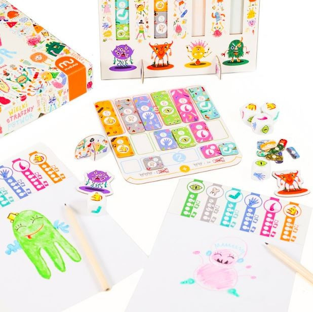 Rodzinna gra typu roll & write z elementami push your luck (testowania szczęścia). Celem jest narysowanie najstraszniejszego potwora. Wygrywa ten, kto jako pierwszy przekroczy krawędź Strachomierza. Jak stworzyć najbardziej przerażającego potworka? Po kawałku! Rzuć kostkami, wybierz jedną z nich, a następnie dorysuj swojemu potworowi wylosowaną część ciała. Bądź uważny i obserwuj, jak rośnie poziom Strachomierza! Ta rodzinna gra nie tylko rozwija motorykę małą i wyobraźnię, ale także bawi procesem twórczym. Zwycięstwo cieszy tu bowiem równie mocno, co własnoręcznie zaprojektowany, fantastyczny i za każdym razem unikalny potworek.