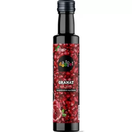 Sok z Granatu 100% A to Dobre! to prawdziwy skarb zdrowotny zamknięty w eleganckiej butelce o pojemności 250 ml. Wyciśnięty bezpośrednio z najlepszych owoców granatu, ten naturalny napój to źródło mnóstwa przeciwutleniaczy, które wspierają Twoje zdrowie na każdym kroku. Dzięki jego wyjątkowym właściwościom, możesz cieszyć się smakiem, który nie tylko orzeźwia, ale także dba o Twój organizm.