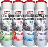 Ten profesjonalny neutralizator BENEK w zestawie 4 x 500g oferuje wyjątkową różnorodność zapachów - lawendowy, owocowy, zielona herbata i naturalny. Dzięki zaawansowanej formule na bazie naturalnych kompleksów składników, skutecznie hamuje rozwój bakterii i grzybów w sposób mechaniczny, zapewniając długotrwałą świeżość i higienę.
