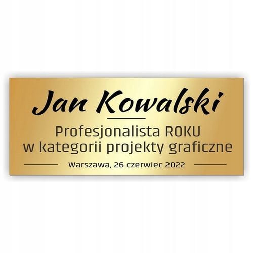 Wszystko to uzupełnia łatwość realizacji i praktyczność. Tabliczka z dedykacją wg zadanego tekstu jest gotowa do samodzielnej aplikacji, z czasem realizacji 2-3 dni robocze dla zamówień do godz. 12:00. To więcej niż tabliczka - to klucz do Twojego osobistego świata trofeów, dostosowany do unikalnych potrzeb i wydarzeń