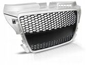 Grill Atrapa AUDI A3 8P RS-TYPE SILVER BLACK to idealny wybór dla wszystkich właścicieli Audi A3 po liftingu, którzy pragną nadać swojemu pojazdowi jeszcze bardziej sportowego i ekskluzywnego wyglądu. Ten przedni grill, wykonany z wysokiej jakości tworzywa ABS, nie tylko podnosi estetykę Twojego samochodu, ale także zapewnia trwałość i odporność na działanie czynników atmosferycznych.