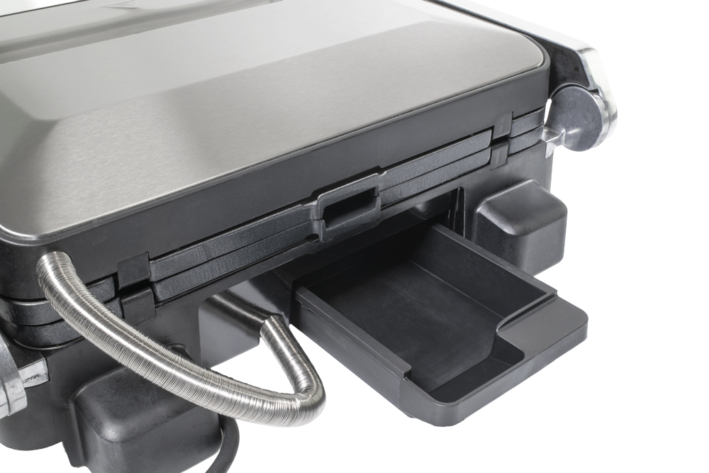 Dodatkowym atutem jest możliwość pełnego rozłożenia urządzenia do 180°, dzięki czemu grill może działać jak klasyczny grill stołowy. To świetne rozwiązanie na spotkania ze znajomymi. Po skończonym grillowaniu, można swobodnie zdjąć płyty i umyć je w zmywarce.