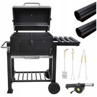 W zestawie znajdują się 4 haczyki np. na sztućce grillowe. Koła ułatwiają przemieszczanie grilla - wystarczy lekko unieść grill i pociągnąć za uchwyt. Na półce można ułożyć talerze, akcesoria grillowe i jedzenie.